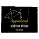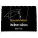 Um esboço de um boné de formando está no topo. Sob o boné, há um modelo neste saco de presentes preto, branco e de ouro falso. O modelo permite que você edite o texto de exibição. Você pode mudar a mensagem, o ano em que o estudante se formou, e o nome do formando. O script de ouro Faux (não folha) forma a mensagem. (Mostrado: Parabéns) O texto de exibição branca está disponível para o nome do formando e para o ano em que o estudante está se formando. (Mostrado: Classe de 2021) Um padrão de texto branco para o ano em que o aluno se gradua também está nas laterais do saco-presente.