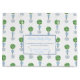 Padrão clássico de topiário de aquarela pintada à mão em uma plantadora de cerâmica azul e branca com arco de disquete azul. Elementos pintados por mim e digitalizados em forma digital.