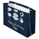 Essa bolsa de presente bonitinha e caprichosa pode ser personalizada com um nome ou título, como filha, neta, sobrinha, amiga etc. Apresenta um adorável elefante bebê numa coroa dourada sentada numa nuvem com estrelas em queda. Ao fundo está um céu noturno estrelado e lua crescente.