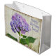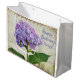 Este grande saco de presentes apresenta uma bonito lavanda de hidrangea floresce com texto que pode ser alterado ou eliminado de acordo com a sua necessidade.
