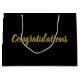 Sacola Para Presentes Grande Parabéns Texto Elegante de Script Dourado em Preto