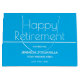 Um saco de presentes de festa de aposentadoria com um design azul e branco. Simplesmente personalize esta bolsa, adicione o máximo que você precisar ao seu carrinho, e celebre a liberdade deste relaxante novo capítulo da sua vida! Design de Férias de Férias de Férias Grandes do Partido da Reforma Azul | ©Melissa Patton - Designer