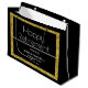 Saco de presentes de festa de aposentadoria com design de brilho preto e dourado (não folha). Simplesmente personalize esta bolsa, adicione o máximo que você precisar ao seu carrinho, e celebre a liberdade deste relaxante novo capítulo da sua vida! Festa de aposentadoria Dourada preta - grande presente - Design de feriado | ©Melissa Patton - Designer