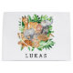 Obrigado a sua família e amigos ou comemore o seu primeiro ano de vida com este adorável e fofo saco de presente de aniversário da selva de safari. Esta design apresenta bebês animais que são um elefante, zebra, girafa, macaco e um leão rodeados de folhas botânicas verdes. Personalize com o nome de sua escolha e mude a fonte e a cor para seu gosto ou deixe esta tipografia popular para sua conveniência. Outros produtos de festa de aniversário estão disponíveis nesta coleção de safari divertida.