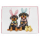 Uma bela ilustração dos cães Rottweiler vestidos para Páscoa. Perfeito para amantes de animais de estimação ou pais de cães para Páscoa.