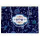 ח ג מ ח פ ס ח ש מ ח ש, ש, ל, , Feliz Passover. Estrela de David, texto hebraico "Shalom" e belo padrão azul de flor em segundo plano Saco de presentes. Cartões e presentes disponíveis na Categoria Feriados Judeus da nossa loja.