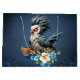 Pássaro rabugento na segunda. Pássaro estilizado engraçado que parece tão sombrio que nem mesmo o sol se atreve a sorrir! Sua plumagem é uma mistura caótica de azul, branco e cinzas, como se ela tivesse se jogado em um pote de tinta quando se levantou. Ao lado dele está uma xícara de café com a bruxa dizendo "É segunda-feira, não meu dia." Esta xícara pode ter um sinal dizendo: "Socorro! Preciso mesmo de umas férias!" Está claro, com uma paleta colorida alegre e flores floridas, até o pássaro mais grumante será a estrela da segunda-feira