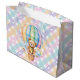 Xadrez De Pastel Gingham Grande Saco De Presente Com Pequenos Corações Brancos Com Balão De Ar Quente E Urso De Teddy Para Um Chá de fraldas
