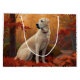 Sacola Para Presentes Grande Pastor anatólico nas Folhas do outono cai inspirad