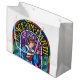 Paz na Terra estilo Pré-Raphaelite Natal / Frasco de Ano Novo - grande bolsa de presente. Apresentando ilustrações em cor de água e lápis coloridos, de um design de vidro manchado após Burne Jones. Este saco-presente pode ser dado no Natal ou Ano Novo. Adicione sua própria mensagem ou nome à bolsa, se desejar.