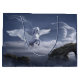 Pegasus em voo contra um céu nublado. Personalização de 100%. Clique no botão PERSONALIZAR para adicionar, mover, excluir, redimensionar ou alterar qualquer uma das fontes ou gráficos.