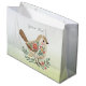 Sacola Para Presentes Grande Pequeno Pássaro Floral Dourado Saco do Presente