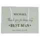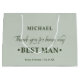 Saco de presente MELHOR HOMEM personalizado com paleta verde-sábio e verde-florestal. O nome modelo está pronto para você adicionar o nome do melhor homem, assim como os nomes da noiva e do noivo e a data do casamento. A obrigado que você escreve diz "Obrigado por ser meu melhor homem" em uma mistura de escrituras elegantes e tipografia forte e ousada. Procure na nossa loja cores e tamanho do alternativo.