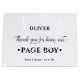 Saco de presente do PAGE BOY personalizado com uma paleta a preto e branco. O nome modelo está pronto para você adicionar o nome do garoto de página, bem como os nomes da noiva e do noivo e a data do casamento. A obrigado que você escreve diz "Obrigado por ser nosso garoto de página" em uma mistura de roteiro elegante e tipografia forte e ousada. Se preferir um plano de fundo diferente, clique em 'personalizar' para introduzir a ferramenta design e alterá-la, ou sinta-se à vontade para nos enviar uma mensagem de assistência. Procure na nossa loja cores e tamanhos de alternativo.