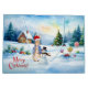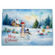 Peter o coelho numa paisagem nevada com uma casa de pão de gengibre, boneco de neve e pop de molho