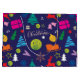 Jogada de Natal colorida Grande Saco de Presente Grande com ícones coloridos de Natal sobre fundo azul marinho. Excelente ideal para terminar, você apresenta para seu amigo ou membro da família de picleball