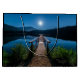 Uma bolsa de presente com uma bela fotografia de um píer de madeira esticado sobre um lago calmo. O céu noturno coberto de estrelas e uma bela lua de cheio.