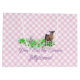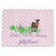 Gingham rosa e um Cabra Pigmeus com ovos de Páscoa na grama. Ela está segurando uma cesta de Páscoa com o ditado "Não Coma as Jellybeans marrons"