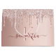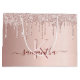 Um saco de presente para um chá de lingerie feminino e glamoroso, festa de despedida de solteira. Um fundo de rosa dourado falso com pingentes de glitter rosa e rosa dourado elegantes, visual de tinta pingando. Personalize e adicione um nome e letra de monograma. O nome é escrito em burgundy com um estilo de letra manuscrita moderna com floreios. Para manter os floreios, exclua apenas o nome da amostra, deixe os espaços ou emojis antes e depois do nome.
