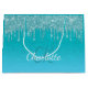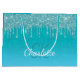 Um fundo degradê azul esverdeado turquesa decorado com pingos de brilho falso, aparência de tinta pingando. Personalize e adicione um nome e iniciais de monograma. Um estilo de letra manuscrita moderna, letras brancas. Para embrulho de presente ou lembrancinhas para festas de aniversário, chá de noiva ou chá de bebê.