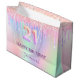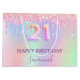 Um saco de presentes para uma aniversário de 21 anos feminina e glamourosa. Um fundo holográfico, cor-de-rosa, roxo e verde-menta, com pingos, pintura pingando. O número 21 é escrito com uma fonte no estilo do balão. Perfeito como um saco de favores ou como um saco de presentes.