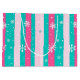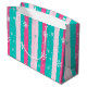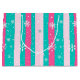 Sacola Para Presentes Grande Pink and Mint Vertical Striped Snowflake
