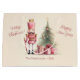 O craqueador rosa mais bonito fica na véspera de Natal próximo a uma bonito árvore de férias decorada e uma variedade de presentes cor-de-rosa. A cena é de um design de aquarela vintage. Esperamos que concorde conosco que é tão fofo! "Feliz Natal!" é uma das duas saudações; a outra é "Felizes anos novos". Você pode mudá-los se quiser. Certifique-se de editar o nome da família e os exemplos de data.