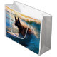 Sacola Para Presentes Grande Pintura Belga de Surfe em Praia