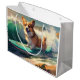 Sacola Para Presentes Grande Pintura para surfar na praia de Corgi