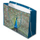 Glamorize seu dom com este grande saco de presentes estilo com um molde azul teal que apresenta uma foto de um lindo Pavão azul com uma plumagem colorida de rabo-de-rosa. Selecione o estilo do seu saco-presente.