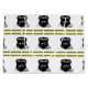 A cena do crime do policial mostra carro policial, crachá, algemas policiais e fita adesiva da cena do crime que diz Não Cruzar.