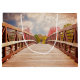 Um saco de presentes grande com uma fotografia cênica. Uma ponte de madeira em direção a um caminho rodeado por árvores florestais mudando de cor.