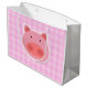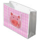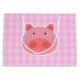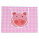Ilustração de um personagem porcino giro sobre um fundo de piquenique cor-de-rosa