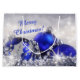 Saco de presente prata de Natal e Ano Novo com bolhas de Natal azuis, luzes brilhantes, tonalidades brilhantes e um espaço para o seu texto.
