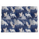 Este belo saco de presentes de Natal apresenta um rico fundo azul escuro com uma bela cena de montanhas num padrão com pinheiros de neve, raposas brancas e corujas de neve voadoras. Este saco de Natal com raposas é perfeito para o seu artesanato de Natal e o Natal apresenta esta temporada.