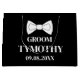 Saco de presente grande preto e branco moderno e elegante para noivo. Perfeito para lembranças de casamento. Você pode personalizá-lo com seu nome e data.