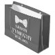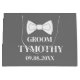 Saco de presente grande moderno, elegante, masculino, cinza e branco para o noivo. Perfeito para lembranças de casamento. Você pode personalizá-lo com seu nome e data.