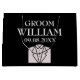 Saco de presente grande para noivo moderno, elegante, masculino, preto e branco. Perfeito para lembranças de casamento. Você pode personalizá-lo com seu nome e data.