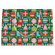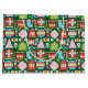 Um padrão de Natal na moda e moderno com ilustrações geométricas de ornamentos, meias, canas doces, presentes, árvores de Natal, flocos de neve, sinos e muito mais inspiradas. As cores incluem: verde, vermelho, branco, azul e rosa.