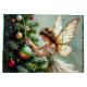 An enchanting Christmas gift bag with an illustration of a fairy or angel decorating a whimsical Christmas tree.