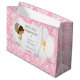 Primeiro saco de presentes da Communion African American Girl Obrigado a apresentar aos seus convidados depois da cerimônia com uma Cor damasco rosa. Todo o texto pode ser alterado de acordo com suas próprias necessidades. Gráficos por BlackCatsMedia e designs de Zenwarehouse.