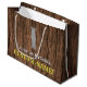 Este design de saco-presente de aparência americana Old West e de aparência country com tema de aniversário apresenta um grande número "1" inspirado na rússia, a mensagem "primeiro aniversario Feliz", um nome editável, e um fundo de padrão de estilo baseado em estilo falsa/imitação de grãos de madeira. Uma bolsa de presente de aniversário personalizada como esta pode ser uma maneira divertida de embrulhar um presente ou presente para alguém que comemora seu primeiro aniversário. [~Z0000470]