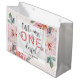 Sacola Para Presentes Grande Primeiro aniversario Floral Rosa, Brilhante