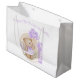 Bonita Saco de Presente Personalizado para uma Garota com ursinho de pelúcia fofo e balões em roxo. Personalize facilmente o nome.