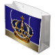 Sacola Para Presentes Grande Príncipe Coroa Dourada Azul Real Rei