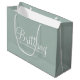 Modern Personalized Bridesmaid Proposal Gift Bag com o nome personalizado da madrinha em estilo de letra branco do script moderno com título no estilo de letra branco do sans serif moderno em fundo verde sábio. Também perfeito para madrinha de casamento, florista e muito mais.