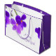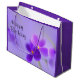 A bolsa de presentes roxa é personalizável em frente e atrás. Flores roxas escuras sobre fundo de cor clara e também há fundo roxo claro com flores. Esta bolsa de presente é adequada a qualquer pessoa que ame flores ou aprecie sua beleza, como um amigo, membro da família ou outro significativo. Uma bela adição à sua comemoração de aniversário.