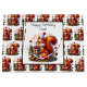 Saco de presente personalizado. Um esquilo de aniversário adorável num chapéu de aniversário com um presente na floresta rodeado por bolotas.