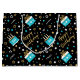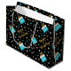 Encerre uma surpresa de aniversário com um saco de presentes personalizado! Um design divertido com um padrão inédito de bolos de aniversário, estrelas e "Feliz Aniversário" em um roteiro de tendências. Personalize a modelo com o nome do destinatário e a idade de aniversário. Perfeito para família e amigos! Cores impressas: azul-verde, preto e dourado. Disponível com a opção de um acabamento mate ou brilhante.