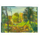 aquarela na seda - equipamento manual. Ouro de outono.Sol quente abre caminho através das folhas de carvalho.Artista de Zolotareva.